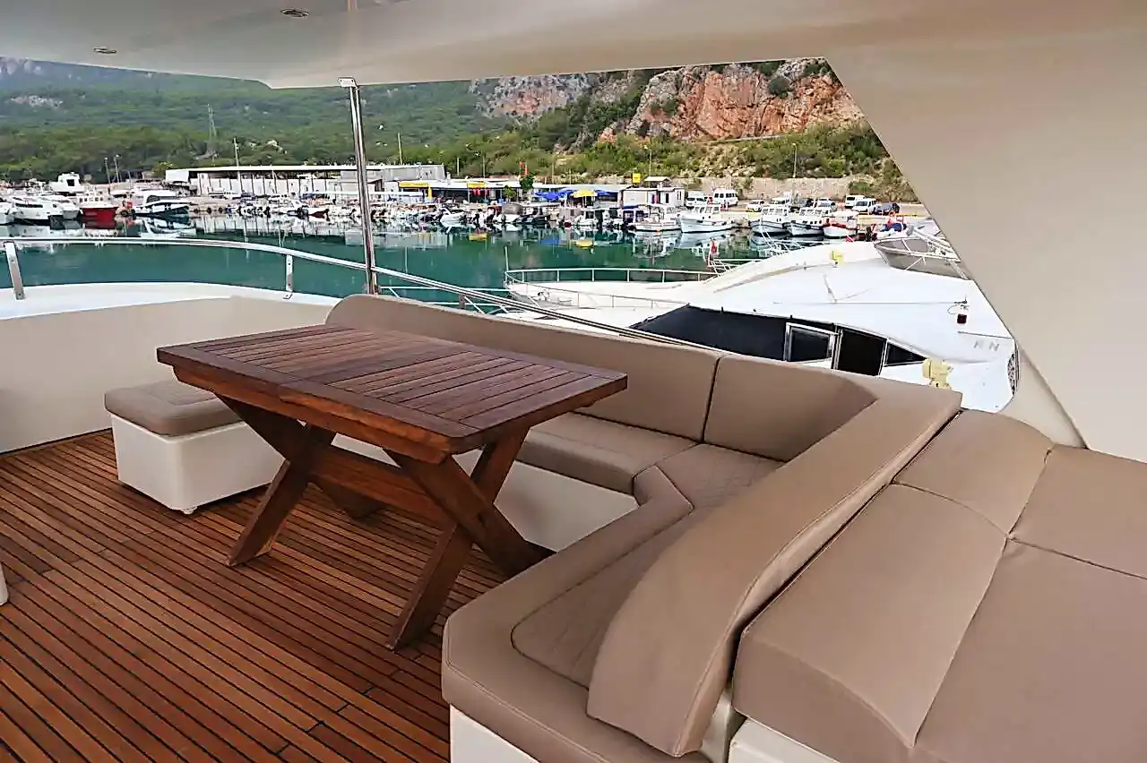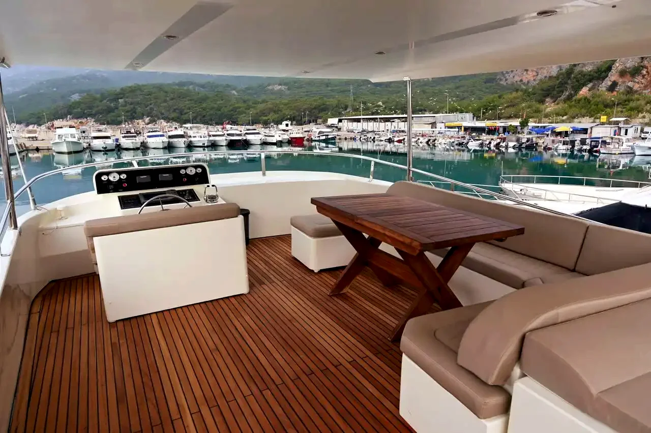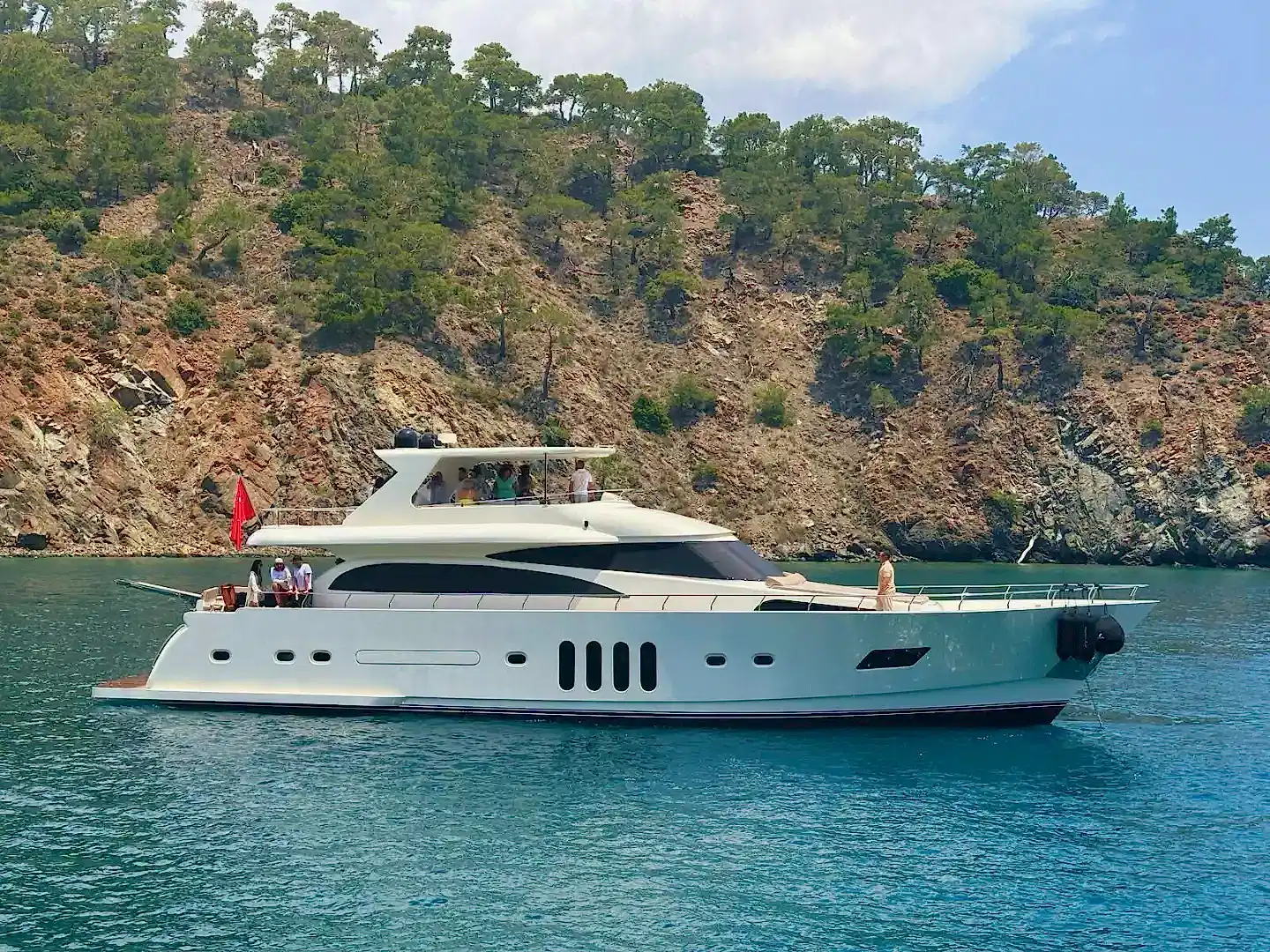 Antalya’nın masmavi sularında benzersiz bir deneyim için 27 metre uzunluğundaki özel yapım yatımız, konfor ve lüksü bir arada sunuyor. 4 geniş kabinde 8 kişilik konaklama imkânı sağlayan teknemiz, 12 kişilik seyir kapasitesiyle doğum günü, bekarlığa veda partileri ve iş toplantıları gibi organizasyonlar için idealdir. 2 çift kişilik ve 4 tek kişilik yatak düzenine sahip olan kabinleri, ferah ve konforlu bir uyku ortamı sunar. Geniş güverte, yüzme platformu, barbekü, müzik sistemi ve klimalı yaşam alanları ile konforlu bir tatil geçirebilirsiniz. Antalya çıkışlı bu lüks yat, özel anlarınızı unutulmaz kılmak için sizi bekliyor!